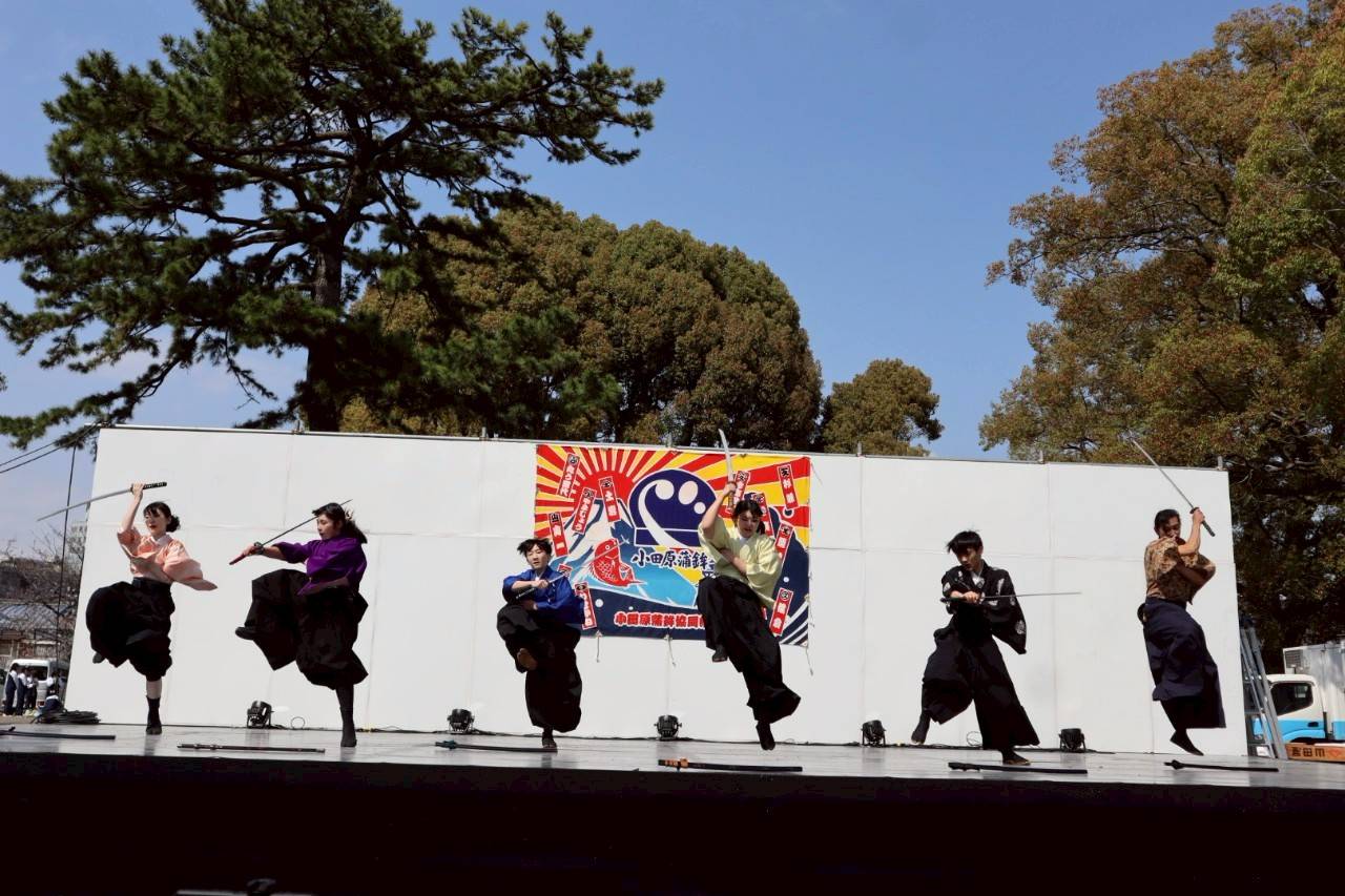小田原城の二の丸広場で行われるかまぼこ桜まつりでの演舞